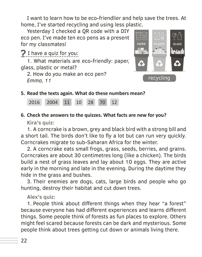 В книге для чтения представлены увлекательные тексты о нашей стране на английском языке. Каждая история построена на коммуникативном принципе: сначала проводится подготовка к теме и формату текста, затем следуют задания на общее и детальное понимание прочитанного, грамматические задания, далее предлагаются вопросы и мини-проекты. Пособие полностью соответствует учебной программе и подойдет для использования на основных и дополнительных занятиях.