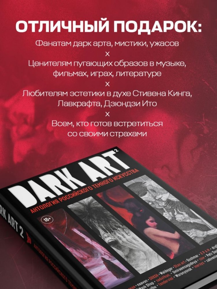 Этот артбук — долгожданное продолжение антологии российского темного искусства. В этом сборнике 20 российских авторов расскажут о том, как они создают жуткие сюжеты, поделятся историями о своем творческом пути, источниками вдохновения и профессиональными секретами.