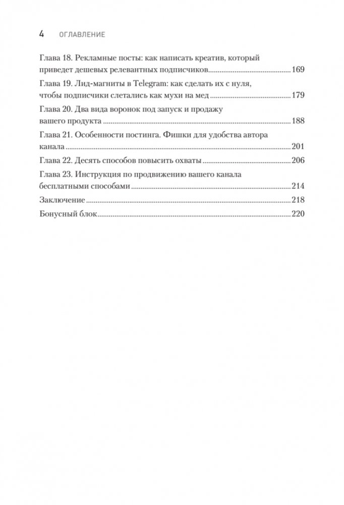 Книга наполнена примерами, формулами и структурами, чтобы каждый, кто до этого даже не вел свой канал в Telegram, мог взять и применить их на практике. Все материалы основываются на личном опыте контент-маркетолога, работающего с ТОПовыми агентствами по трафику в Telegram и онлайн-школами.