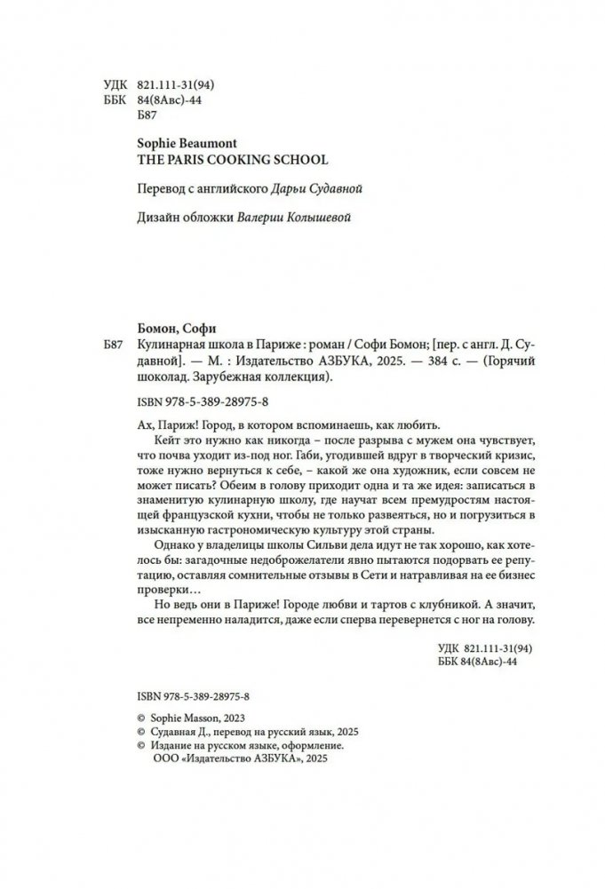 Кейт это нужно как никогда – после разрыва с мужем она чувствует, что почва уходит из-под ног. Габи, угодившей вдруг в творческий кризис, тоже нужно вернуться к себе, – какой же она художник, если совсем не может писать? Обеим в голову приходит одна и та же идея: записаться в знаменитую кулинарную школу, где научат всем премудростям настоящей французской кухни, чтобы не только развеяться, но и погрузиться в изысканную гастрономическую культуру этой страны.