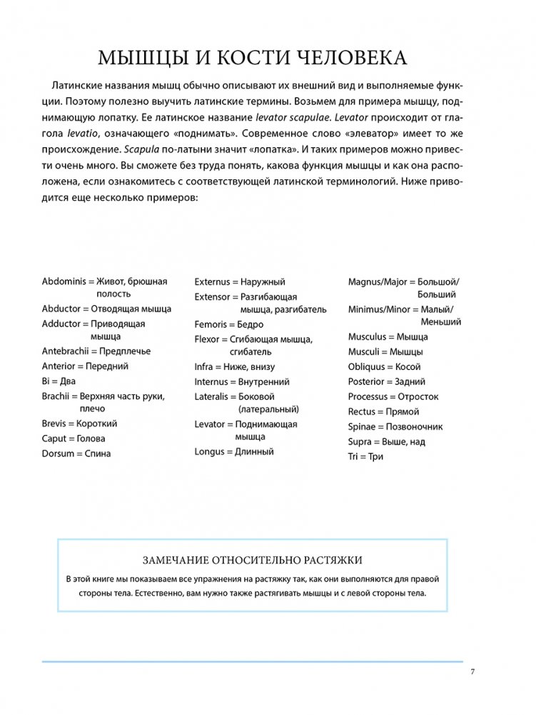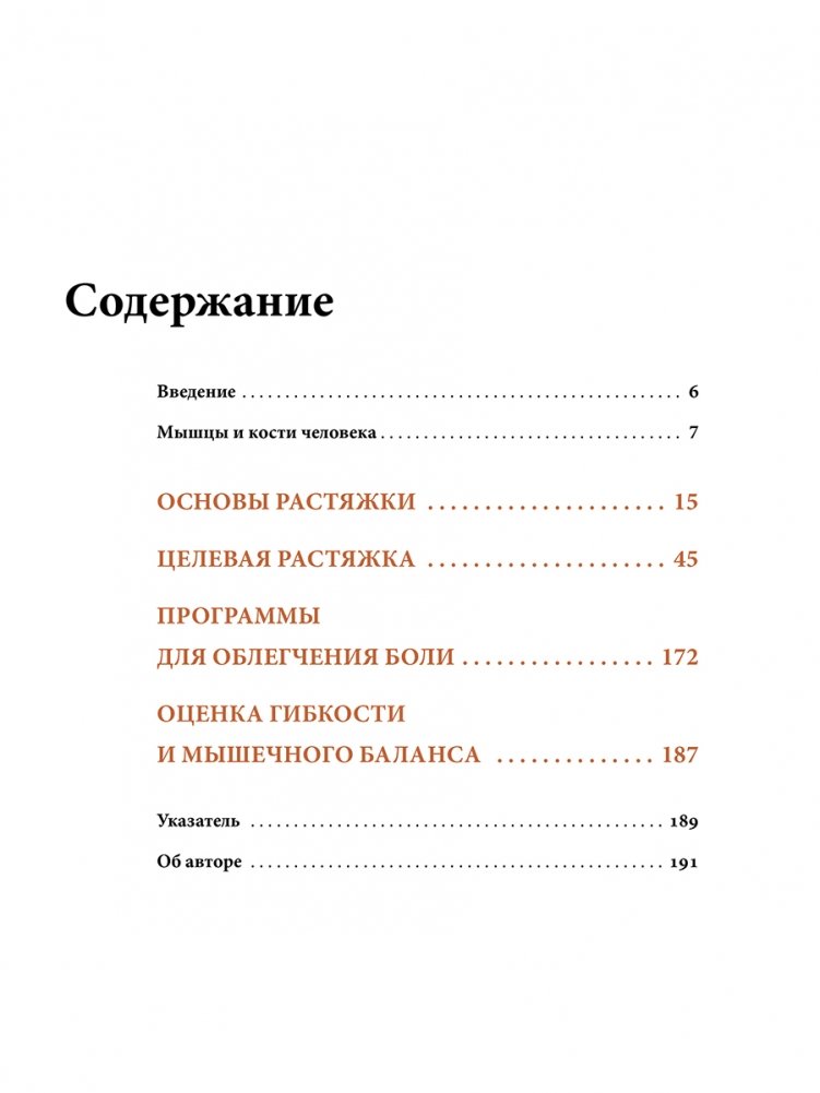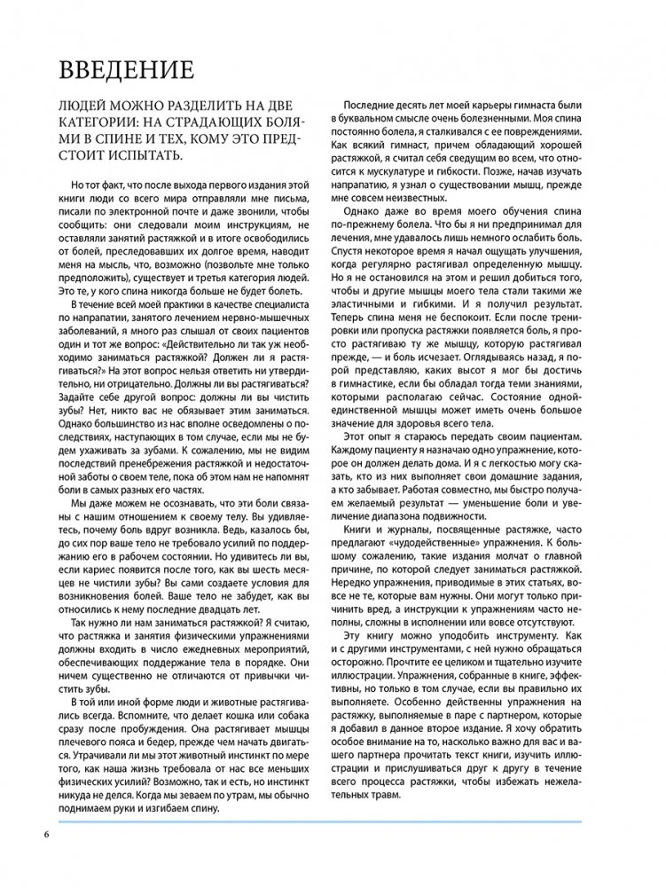 Никому не нравится жить с болью. Какой бы ни была причина болезненных симптомов в вашем случае: неправильная осанка, монотонные движения, продолжительное сидение в офисе, травмы или малоподвижный образ жизни, — эта книга поможет вам встать на путь оздоровления и устранения любого дискомфорта. В ней приведены цветные анатомические иллюстрации и пошаговые инструкции к десяткам эффективных упражнений на растяжку, которые помогут избавиться от боли, мышечного закрепощения, улучшить баланс и гибкость мышц, увеличить диапазон движения суставов, предупредить распространенные травмы. Здесь вы найдете разные виды упражнений, включая индивидуальную растяжку без посторонней помощи, растяжку с использованием теннисного мяча, растяжку с партнером. Автор предлагает отдельные программы упражнений специально для проблемных зон и распространенных нарушений: * Боли в спине и шее * Ограничение подвижности * Головные боли * Боли в плечевом поясе * Эпикондилит локтевого сустава («локоть теннисиста») и медиальный эпикондилит («локоть гольфиста») * Пателлофеморальный болевой синдром («колено бегуна»).