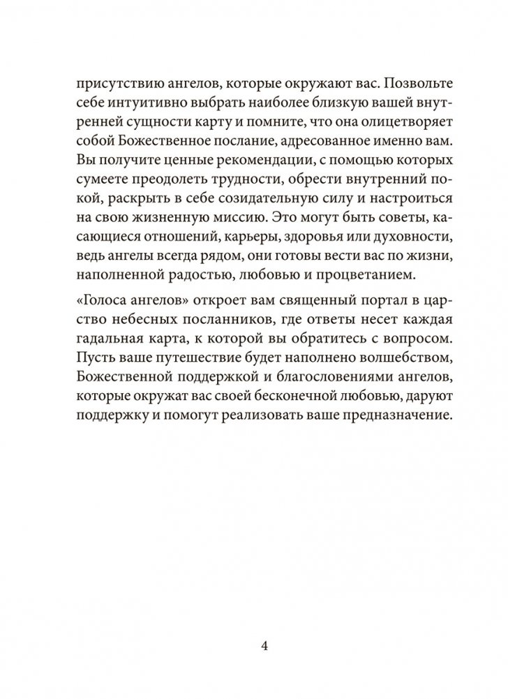 Каждая карта является священным порталом к мудрости и свету ангелов, которые несут послания, наполненные безусловной любовью, Божественной поддержкой и помощью в личной трансформации. Доверьтесь голосам этих прекрасных созданий, повсюду окружающих нас, и позвольте их заботе ярко осветить ваш жизненный путь.