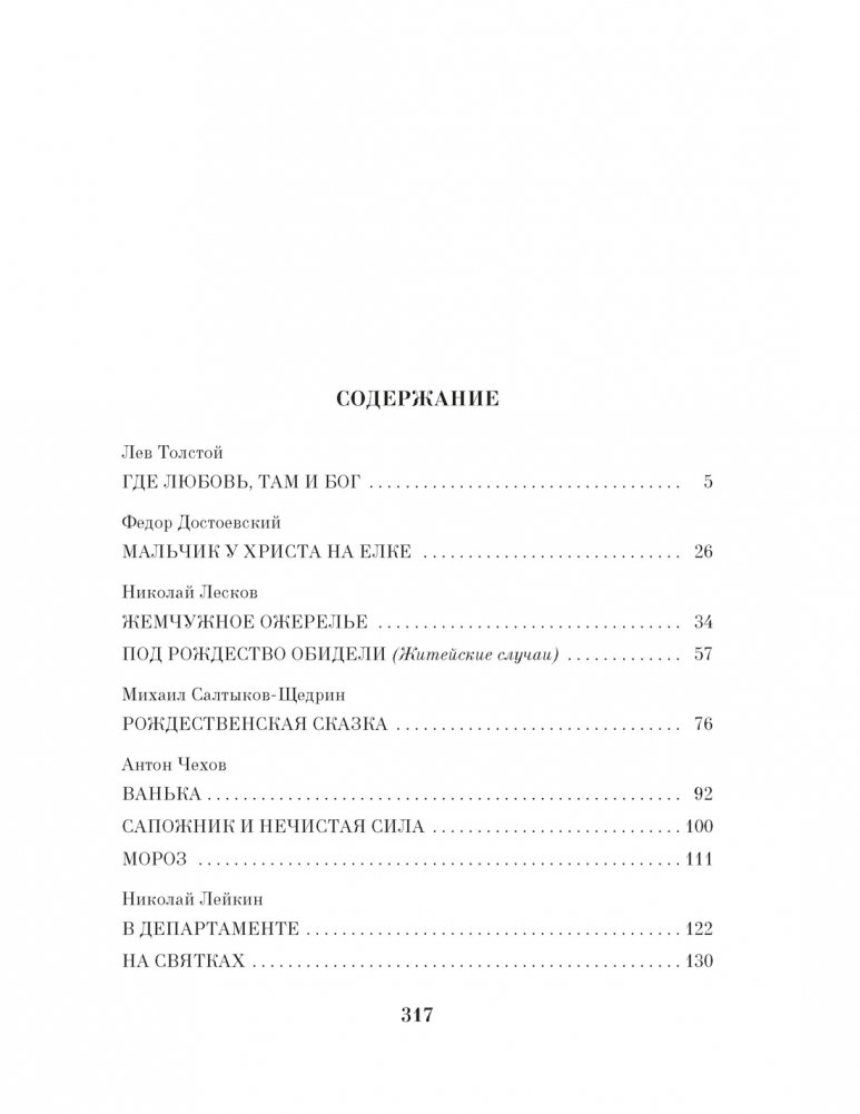 Рождество Христово, открывающее Святки, — один из самых главных русских календарных праздников. Это удивительное время, когда один год приходит на смену другому, наполнено надеждой на то, что все горести остались позади, а в будущем восторжествуют добро и справедливость. Верой в чудо проникнуты произведения русских классиков XIX — начала ХХ века, объединенные в этой книге. Л. Н. Толстой, Ф. М. Достоевский, Н. С. Лесков, А. П. Чехов, Н. А. Лейкин, А. И. Куприн и др., создав лучшие образцы жанра рождественского рассказа, запечатлели атмосферу и традиции празднования Рождества и Нового года в дореволюционной России — в больших городах и деревнях, в роскошных особняках и домах бедняков. В произведениях писателей-эмигрантов, Ивана Бунина, Саши Черного, Ивана Шмелева, ощущается ностальгия по ушедшей эпохе: воспоминания о рождественских праздниках неотделимы от воспоминаний о былой России.