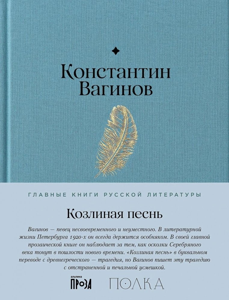 Вагинов — певец несвоевременного и неуместного. В литературной жизни Петербурга 1920-х он всегда держится особняком. В своей главной прозаической книге он наблюдает за тем, как осколки Серебряного века тонут в пошлости нового времени. «Козлиная песнь» в буквальном переводе с древнегреческого — трагедия, но Вагинов пишет эту трагедию с отстраненной и печальной усмешкой.