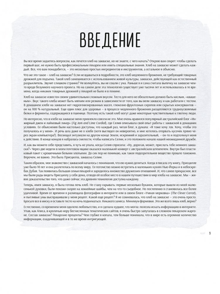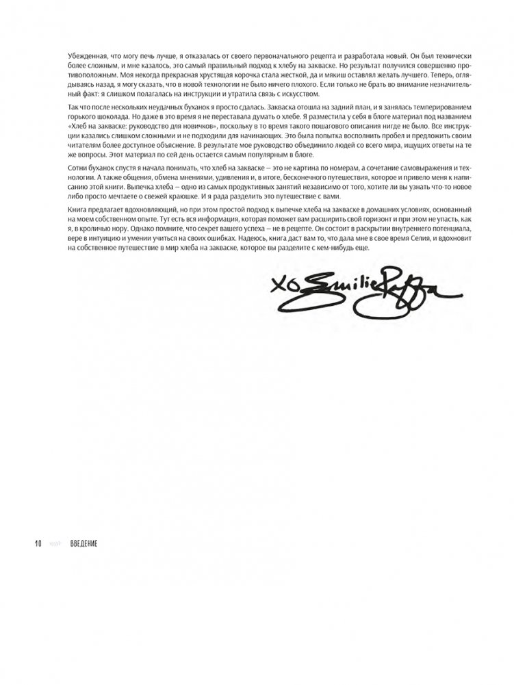Эта книга делает вкуснейший, аппетитно хрустящий хлеб доступным для каждого, кто интересуется выпечкой на закваске. Эмили Раффа объясняет, как в домашних условиях вывести свою закваску всего из двух ингредиентов. Вы узнаете, что нужно живым культурам для процветания и как спасти закваску, которую вы забыли покормить. Вы сможете легко и быстро испечь свою первую буханку благодаря простым рецептам для начинающих, и ваш дом наполнится упоительным ароматом свежей выпечки. Затем вы расширите горизонты с помощью более чем 65 невероятных рецептов, среди которых есть «Оливки, тимьян и пармезан», «Мягкий цельнозерновой со свежим медом», «Пицца-фокачча с соусом песто и сыром фонтина без замеса», «Булочки с расплавленным азиаго, сладкими яблоками и розмарином» и многое-многое другое. Во всех рецептах используется техника, которая почти не требует замеса: пусть закваска сама выполнит за вас основную работу. Вы сможете вклинить выпечку в свое расписание, даже если очень заняты карьерой или детьми. Как профессиональный шеф-повар, фуд-блогер и заядлый домашний пекарь, Эмили много лет изучала методы работы с закваской не только с научной, но и с практической точек зрения. В этом руководстве с потрясающими фотографиями она рассказывает о своем путешествии, чтобы вы могли начать свое. Выпечка великолепного хлеба на закваске может показаться хлопотным занятием, однако краткие, четкие инструкции Эмили, ее полезные советы и поддержка сделают этот процесс совершенно несложным. Благодаря ее книге у меня появилась чудесная привычка хлебопечения, от которой невозможно избавиться! — Саманта Сеневиратне, автор книги The New Sugar and Spice, номинант на премию Джеймса Берда Книга Эмили полна креативных и практичных рецептов, потрясающих ноу-хау и вдохновляющих советов. Миф о сложности выпечки на закваске наконец развеян! — Александра Стаффорд, автор книги Bread Toast Crumbs.