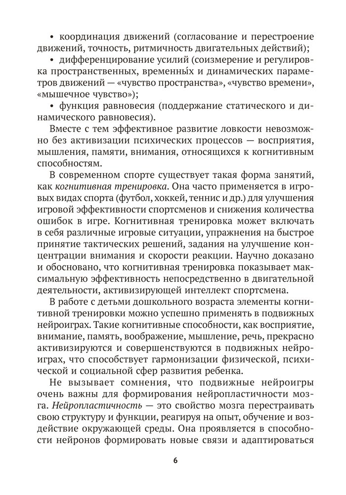 Пособие содержит авторские подвижные нейроигры, ориентированные на развитие физических качеств и двигательных способностей детей от 4 до 7 лет. Игры сопровождаются заданиями, которые требуют проявления внимания, логического мышления, памяти, точности движений, зрительно-моторной координации. Материалы издания способствуют реализации задач образовательной области «Физическая культура» учебной программы дошкольного образования.