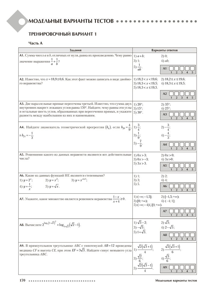 Пособие позволит старшеклассникам и абитуриентам самостоятельно и качественно подготовиться к централизованному экзамену и централизованному тестированию, а учителям и репетиторам — проработать с учащимися все темы школьного курса математики и проверить предусмотренные программой навыки и умения.