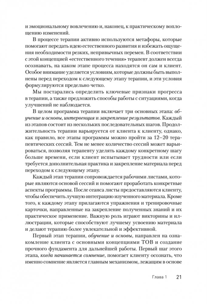 Эта книга представляет собой наиболее полное на сегодняшний день пособие по применению одного из подходов КПТ - терапии, основанной на выводах (ТОВ) - для лечения ОКР. Авторы обращаются к философской и исследовательской базе этого подхода и шаг за шагом объясняют, как проводить терапию на каждом ее этапе. Основная аудитория этой книги — терапевт и клиент, совместно вовлеченные в процесс терапии в клинических и неклинических условиях. Таким образом, это руководство, снабженное клиническими примерами и объединяющее теорию и практику, подробно описывает ведение клиента - от первоначального обследования до прекращения терапии и последующего наблюдения, и показывает, как эта программа может быть применена к другим серьезным психическим расстройствам.