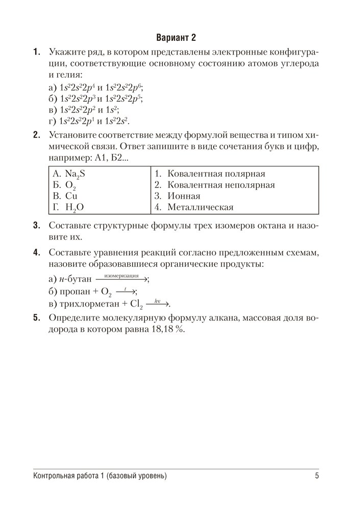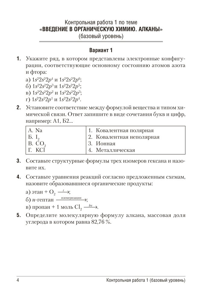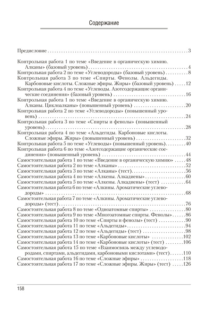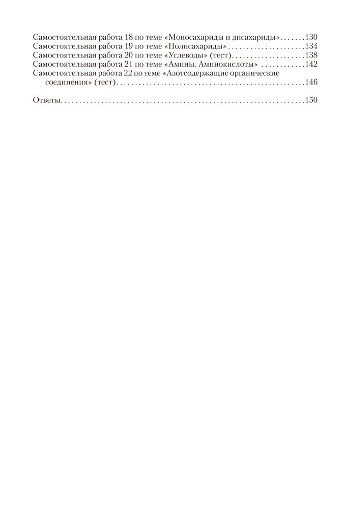 Сборник включает контрольные и самостоятельные работы по химии для 10 класса, представленные в четырех или двух (тесты) вариантах. Содержание работ соответствует учебным программам для базового и повышенного уровней.