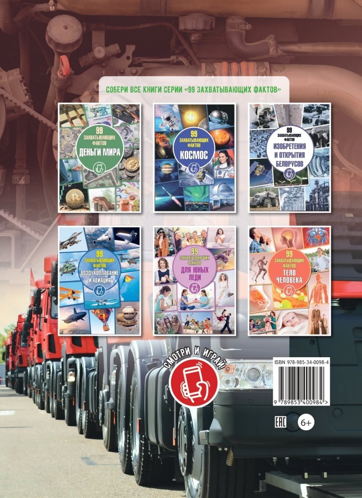 Красочно иллюстрированное издание знакомит читателей с машинами, которые ежедневно помогают человеку и значительно упрощают нашу жизнь. Какую технику можно увидеть на городских дорогах и улицах? Без каких машин не обойтись в поле и на стройке? На каком транспорте комфортно путешествовать? На эти и многие другие вопросы ответит интерактивная книга из серии «99 захватывающих фактов».