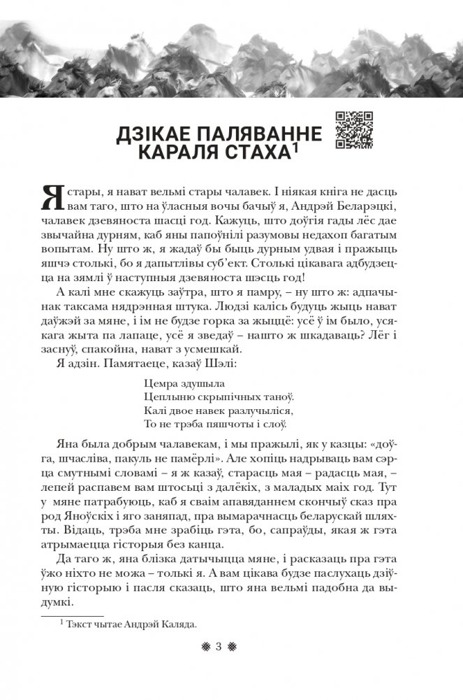 Прапанаваныя чытачу творы змяшчаюць спасылкі ў выглядзе QR-кодаў на аўдыязапісы тэкстаў.
