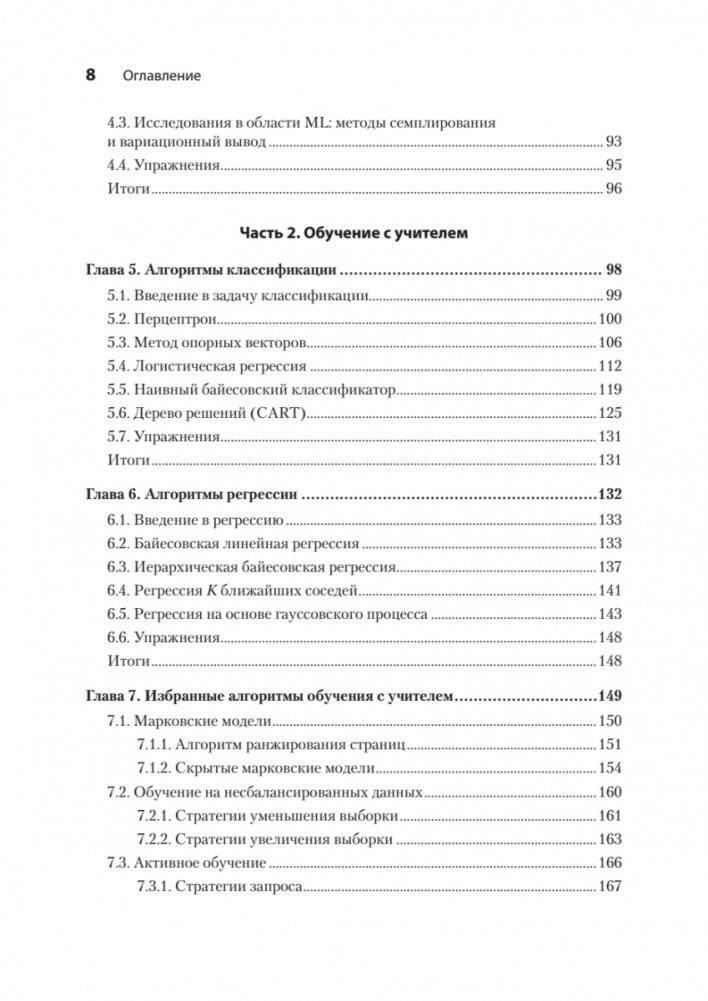 В книге анализируются и объясняются десятки алгоритмов, применяемых в различных сферах, в частности, финансах, компьютерном зрении и обработке естественного языка. Каждый алгоритм сначала выводится математически, а потом иллюстрируется кодом на Python, снабженным подробными пояснениями и информативными графиками. Особую ценность представляет данная автором ясная интерпретация байесовских алгоритмов для моделей Монте-Карло и марковских цепей.