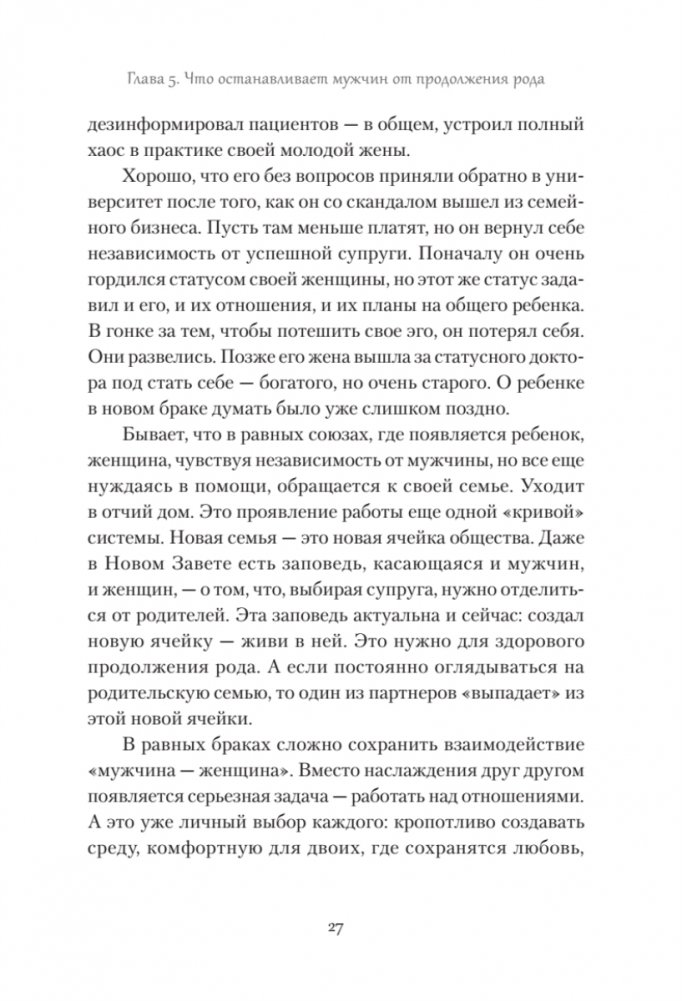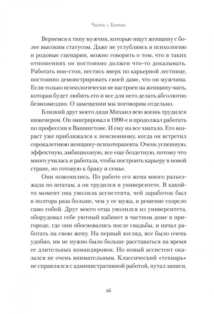 Книга о тонкостях взаимоотношений между мужчиной и женщиной в эпоху перемен. В мире, где традиционные роли больше не работают, а границы ответственности в паре всё больше размываются, автор исследует, как можно построить настоящие партнёрские отношения. Сквозь призму системной психологии раскрываются самые острые вопросы современности: почему всё труднее выстраивать крепкие и долгосрочные союзы, откуда берутся раздражение и усталость в отношениях, и как найти внутренний ресурс для любви — к партнёру, детям и самому себе.
