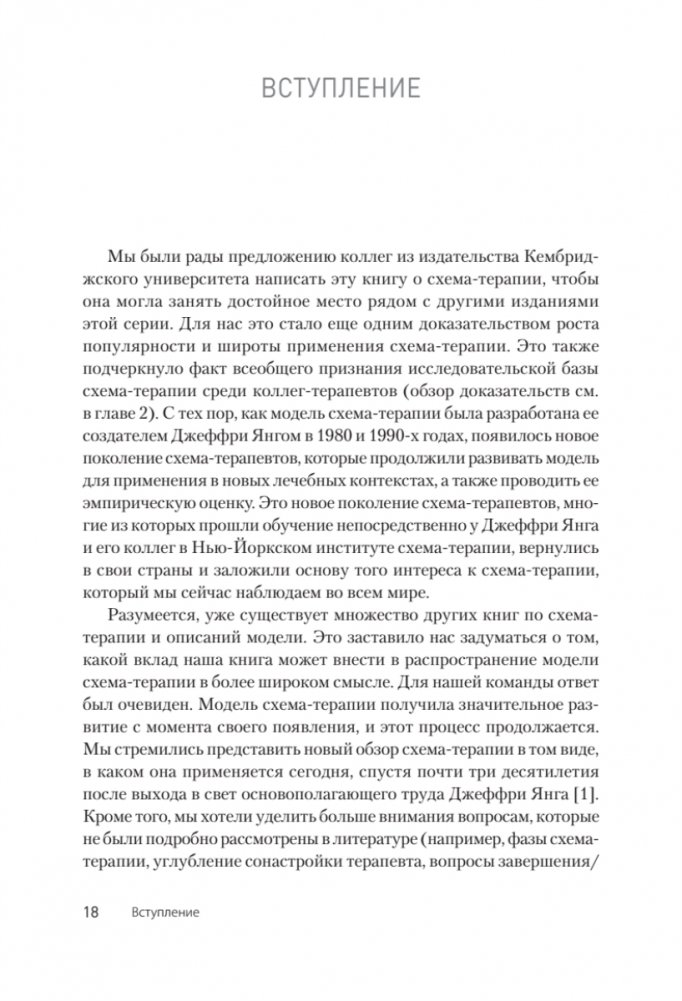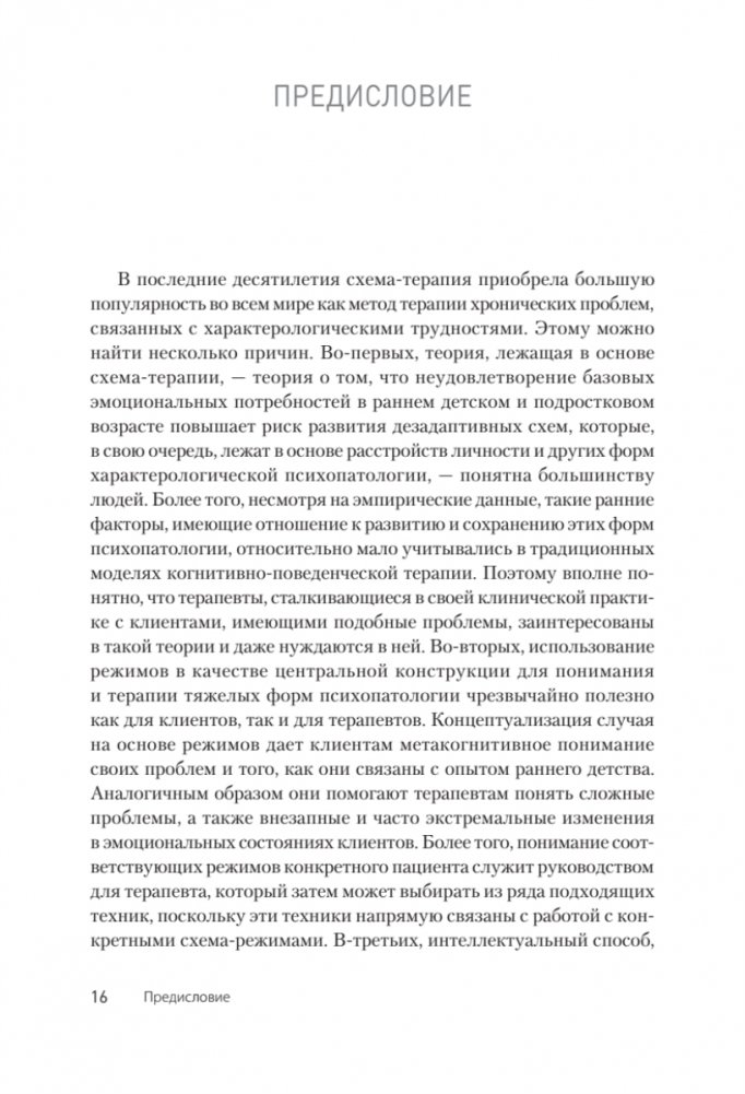 Эта книга дает максимально полное представление о схема-терапии: ее модели, современных исследованиях в этой области, основных группах техник: экспериенциальных, когнитивных, поведенческих, а также техник, связанных с терапевтическими отношениями. Кроме того, авторы описывают работу со сложными клиническими случаями — хронической депрессией и тревожностью, комплексной травмой и диссоциацией, расстройствами пищевого поведения, предоставляя пошаговые инструкции и клинические примеры. Также раскрываются особенности групповой схема-терапии и особенности проведения онлайн-терапии — с акцентом на адаптацию техник для этого формата. Одна из глав посвящена супервизии, она будет полезна как супервизорам, так и супервизантам. Уникальность этого издания в том, что оно поможет усовершенствовать практику и стажерам, и экспертам-клиницистам.