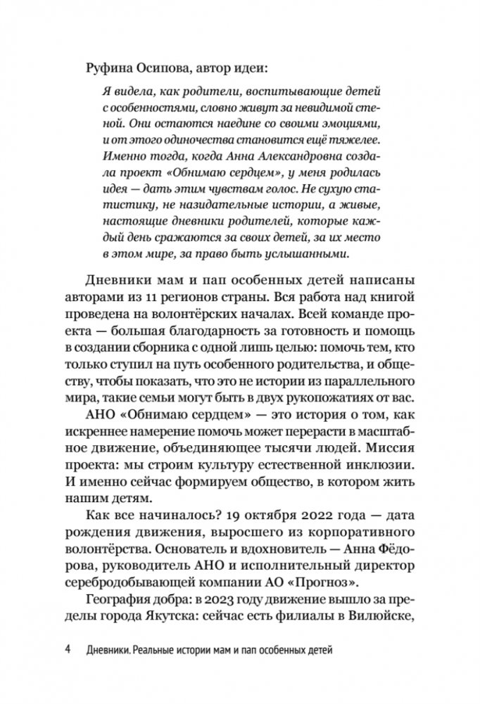 Перед вами сборник искренних рассказов о силе духа, вере и родительской любви. Это собрание настоящих историй от родителей, которые столкнулись с непростыми испытаниями, воспитывая детей с инвалидностью и ограниченными возможностями здоровья. Каждая страница пропитана глубокими переживаниями и непоколебимой верой в лучшее. В книге мамы и папы найдут эмоциональную опору и практические рекомендации, а их близкие, друзья и педагоги - простые способы помочь семье. Читайте, сопереживайте, дайте этим историям коснуться вашего сердца. Сканируйте QR-код, чтобы присоединиться к сообществу "Обнимаю сердцем" и подержать его проекты.
