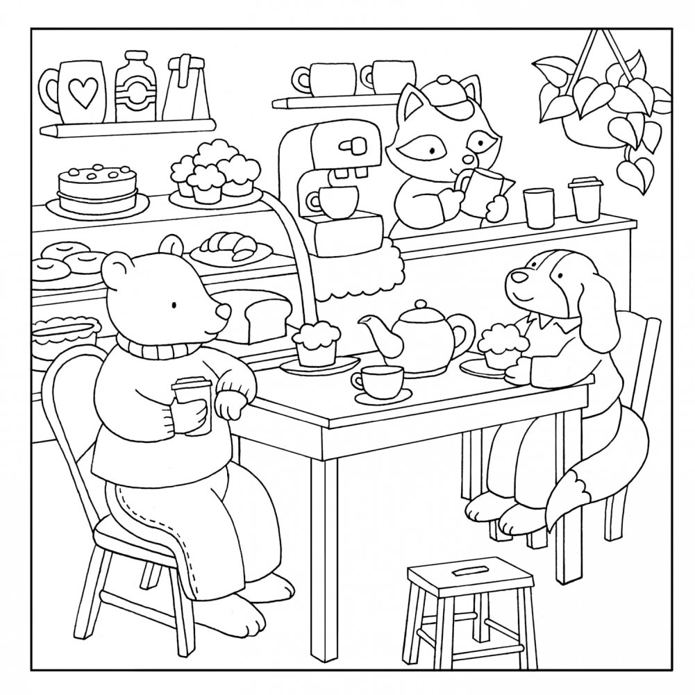 Everything is better when you do it with friends! Unplug and enjoy creatively coloring delightful scenes of cute animal friends engaged in lots of fun activities, whether it be gardening, dancing, fishing, or having a cup of tea.