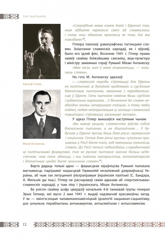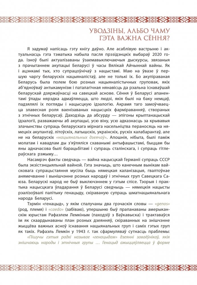 Аўтар на падставе багатых навуковых і архіўных крыніц аналізуе дзейнасць беларускіх калабарантаў, якія супрацоўнічалі з нацысцкімі акупантамі ў гады Вялікай Айчыннай вайны. Акупіраваная гітлераўцамі Беларусь была полем злачыннай дзейнасці розных нацыяналістычных груповак, якіх аб’ядноўваў антыкамунізм і паталагічная нянавісць да рэальна існаваўшай беларускай дзяржаўнасці на савецкай аснове. Людзі, якія былі на баку немцаў, падзялялі іх погляды і нацысцкую ідэалогію, яны разам з нацыстамі рэалізоўвалі палітыку генацыду, скіраваную супраць народа Беларусі.