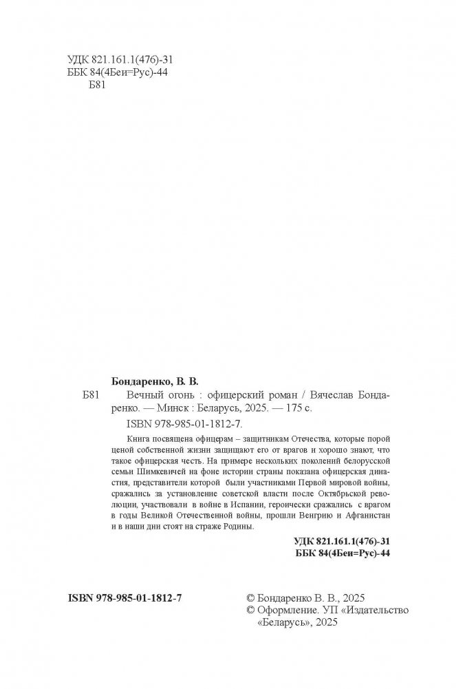 Книга посвящена офицерам – защитникам Отечества, которые порой ценой собственной жизни защищают его от врагов и хорошо знают, что такое офицерская честь. На примере нескольких поколений белорусской семьи Шимкевичей на фоне истории страны показана офицерская династия, представители которой были участниками Первой мировой войны, сражались за установление советской власти после Октябрьской революции, участвовали в войне в Испании, героически сражались с врагом в годы Великой Отечественной войны, прошли Венгрию и Афганистан и в наши дни стоят на страже Родины.