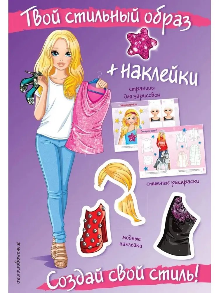 Ты готова стать настоящим стилистом и придумывать уникальные образы для звезд? Стильные раскраски, страницы для зарисовок и модные наклейки в твоем полном распоряжении! Открепи от обложки удобную вкладку с фигурками - и вперед! Придумывай, твори, вдохновляй!