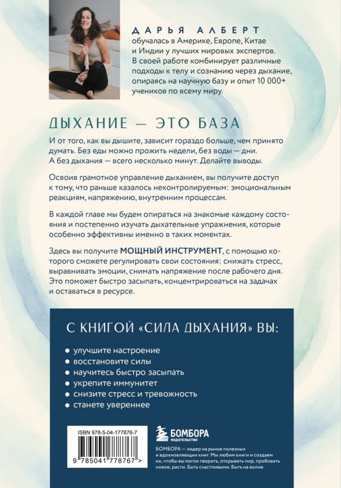Дарья Алберт обучалась в Америке, Европе, Китае и Индии у лучших мировых экспертов. В своей работе комбинирует различные подходы к телу и сознанию через дыхание, опираясь на научную базу и опыт 10 000+ учеников по всему миру.