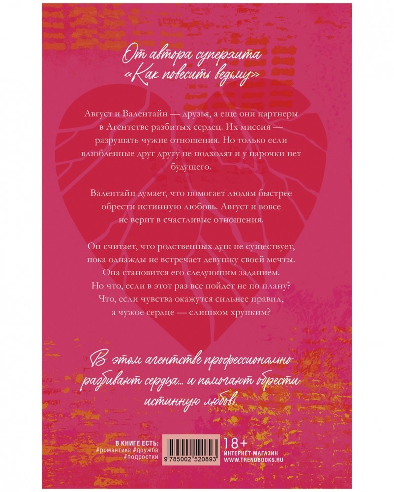 Август и Валентайн ― друзья, а еще они партнеры в Агентстве разбитых сердец. Их миссия ― разрушать чужие отношения. Но только если влюбленные друг другу не подходят и у парочки нет будущего.