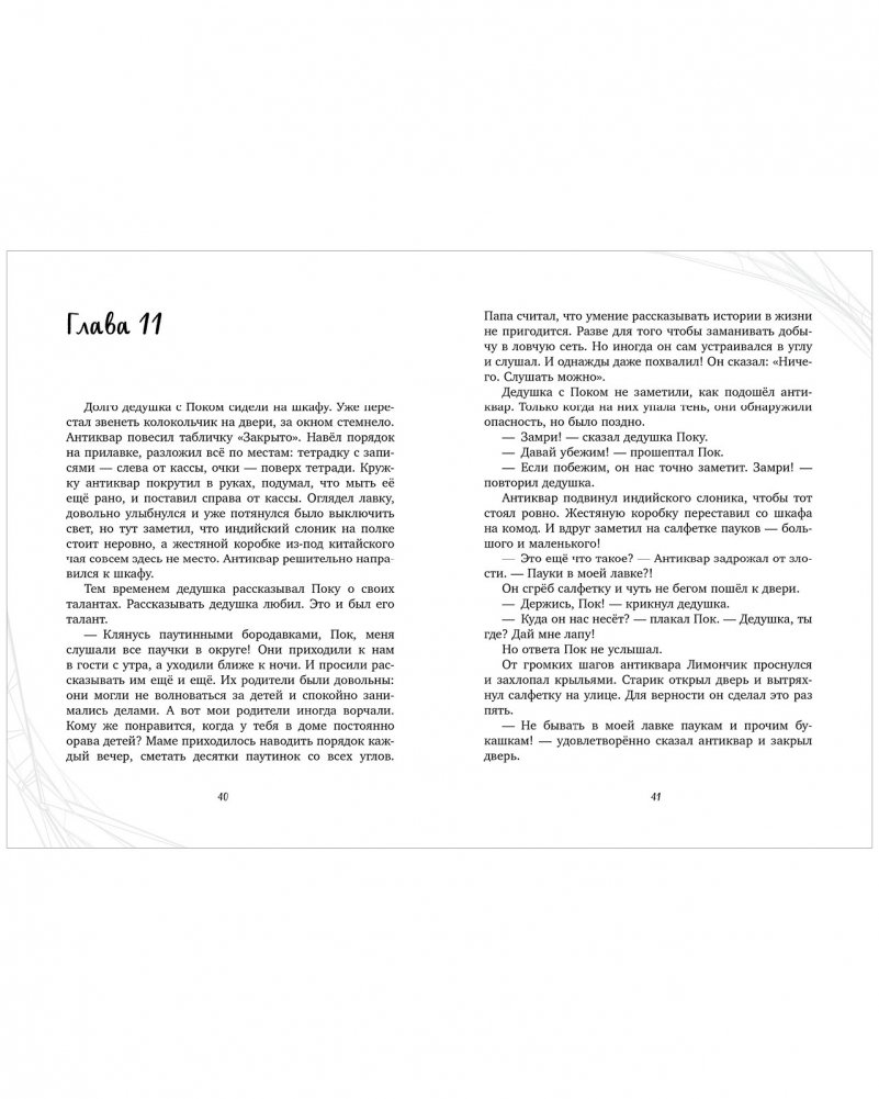 Приключения милого паучка и его друзей из антикварной лавки. Чудесная история о храбрости, дружбе и о том, что талант есть в каждом из нас.