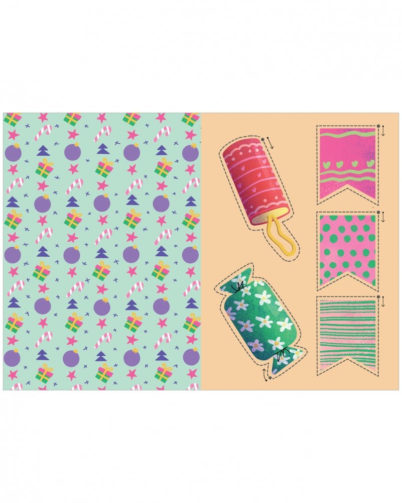 Праздничные картинки с простыми геометрическими формами этой книги для детей легко вырезать по контуру. Стрелки показывают направление движения ножниц — малыш точно не запутается.