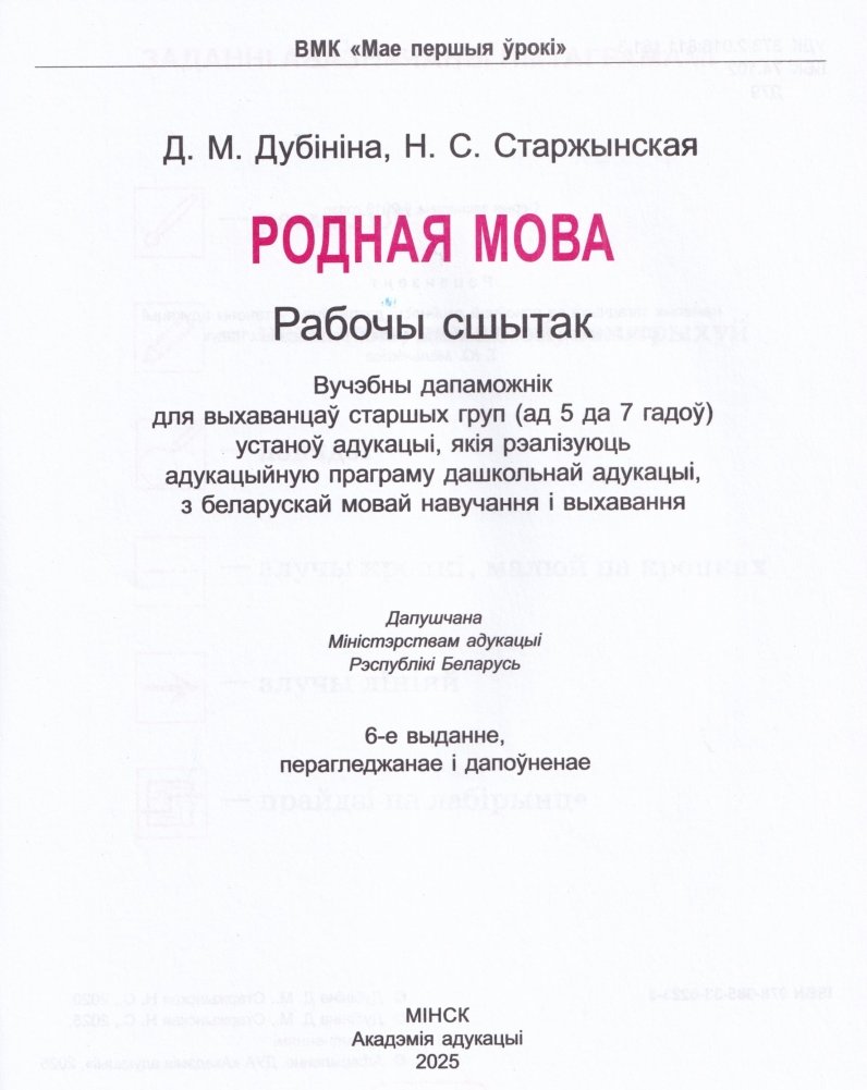 Вучэбны дапаможнік для выхаванцаў старшых груп (ад 5 да 7 гадоў) устаноў адукацыі, якія рэалізуюць адукацыйную праграму дашкольнай адукацыі, з беларускай мовай навучання і выхавання