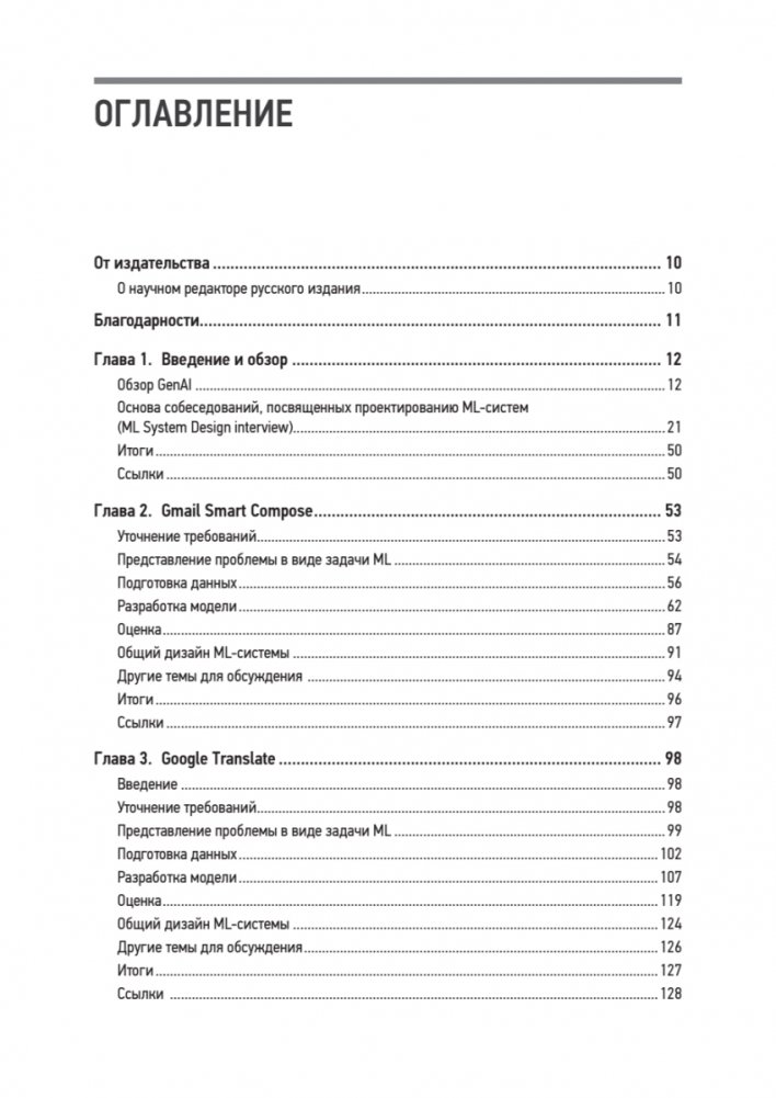 Интенсивный практикум по проектированию сложных ML-систем сфокусирован на самой горячей теме последних лет: генеративном искусственном интеллекте. Если вы датасайентист или ML-инженер, готовый перейти от теоретических знаний и изолированных моделей к созданию полноценных, масштабируемых и надежных продуктов, эта книга для вас. Авторы не просто рассказывают о трансформерах и диффузионных моделях — они проводят читателя через весь жизненный цикл системы: от сбора и очистки данных и выбора архитектуры до развертывания и мониторинга. Книга построена вокруг разбора реальных кейсов (Gmail Smart Compose, Google Translate, ChatGPT), что делает её бесценным ресурсом для подготовки к сложным интервью по System Design и для реальной работы.