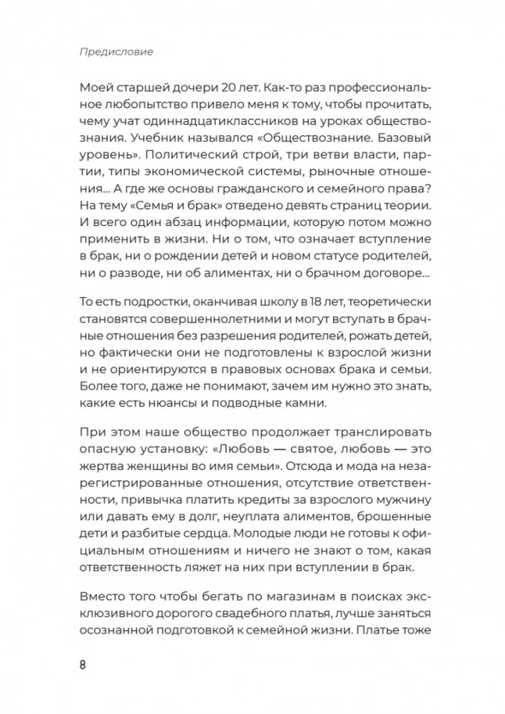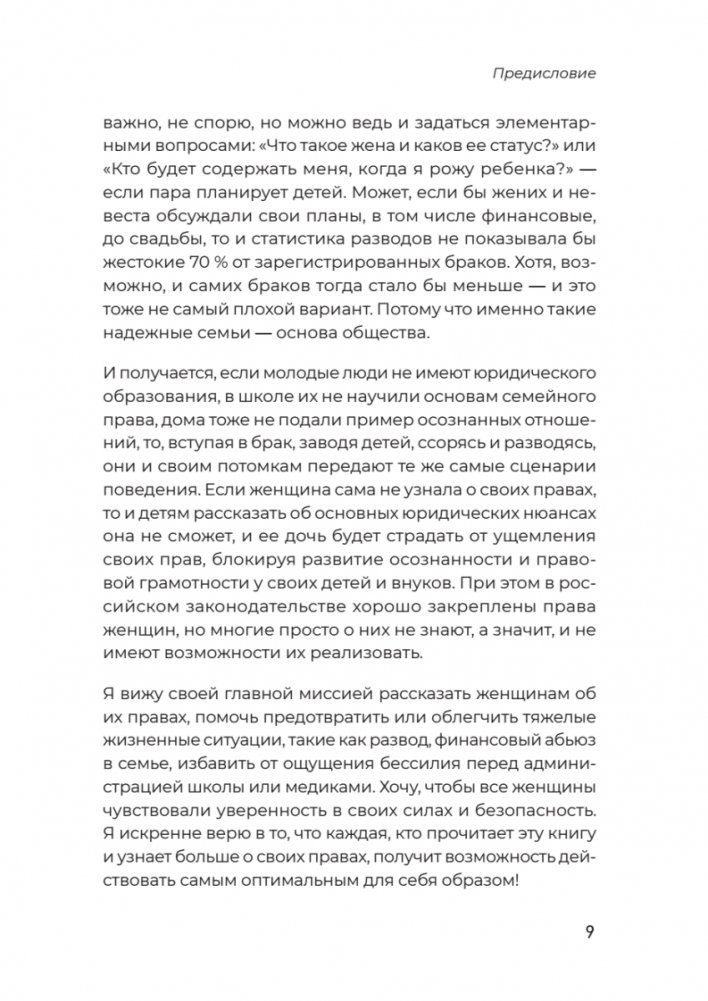 Вы узнаете, в каких случаях невыгодно выходить замуж, зачем стоит заключить брачный договор, даже если ваш избранник не миллионер, как защитить детей от нарушения их прав в больнице, детском саду, школе, как мягко развестись и даже о том, как любовнице получить (или не получить) свою долю в наследстве.