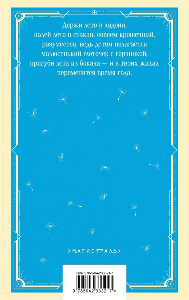 Все эти истории словно охапка одуванчиков. Из них Брэдбери сделал терпкое вино, поместил в книгу и поставил ее на полку, чтобы в нужный момент каждый смог почувствовать вкус лета и жизни.