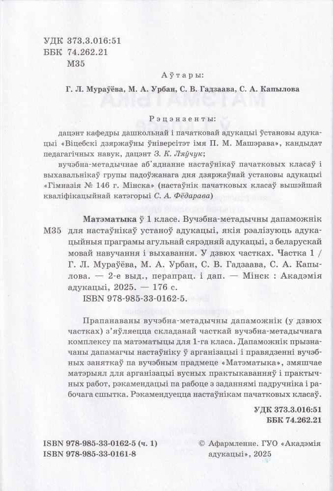 Прапанаваны вучэбна-метадычны дапаможнік (у дзвюх частках) з'яўляецца складанай часткай вучэбна-метадычнага комплексу па матэматыцы для 1-га класа. Дапаможнік прызначаны дапамагчы настаўніку ў арганізацыі і правядзенні вучэбных заняткаў па вучэбным прадмеце "Матэматыка", змяшчае матэрыял для арганізацыі вусных практыкаванняў і практычных работ, рэкамендацыі па рабоце з заданнямі падручніка і рабочага сшытка.