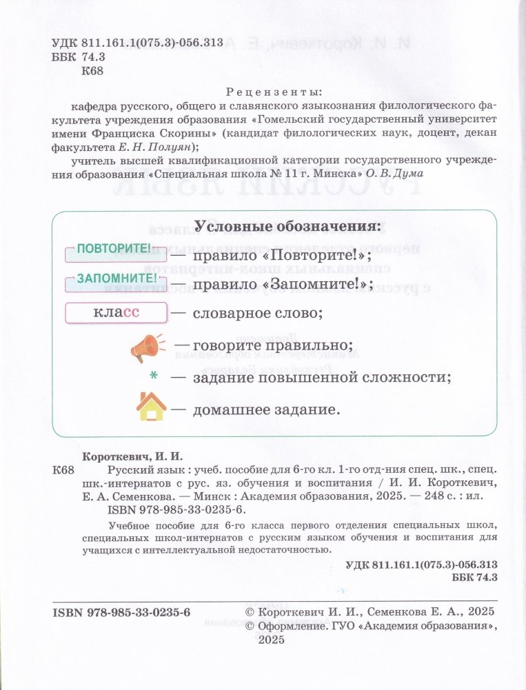 Учебное пособие для первого отделения специальных школ, специальных школ-интернатов с русским языком обучения и воспитания для учащихся с интеллектуальной недостаточностью