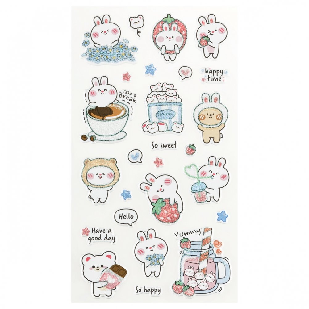 Наклейки объемные MESHU "Bubble bunny", 10х23 см, с блестками, пакет европодвес. Арт. MS_57641