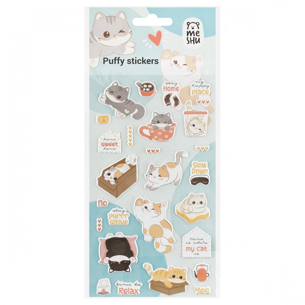 Наклейки объемные MESHU "Funny kitty", 10х23 см, пакет европодвес. Арт. MS_57651