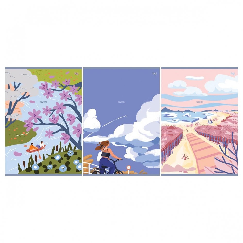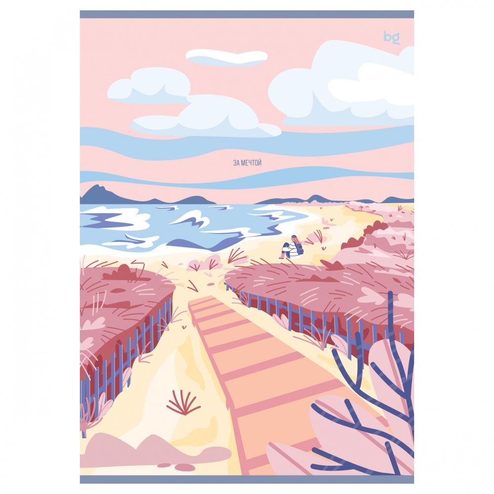 Тетрадь BG "За мечтой", формата А4 (205х295 мм) на скобе состоит из 48 листов и прекрасно подходит для конспектов, работы и ведения документооборота. Внутренний блок – офсетная бумага плотностью 60 г/м², белизна – 90%, линовка – клетка. Обложка тетради изготовлена из мелованного картона.