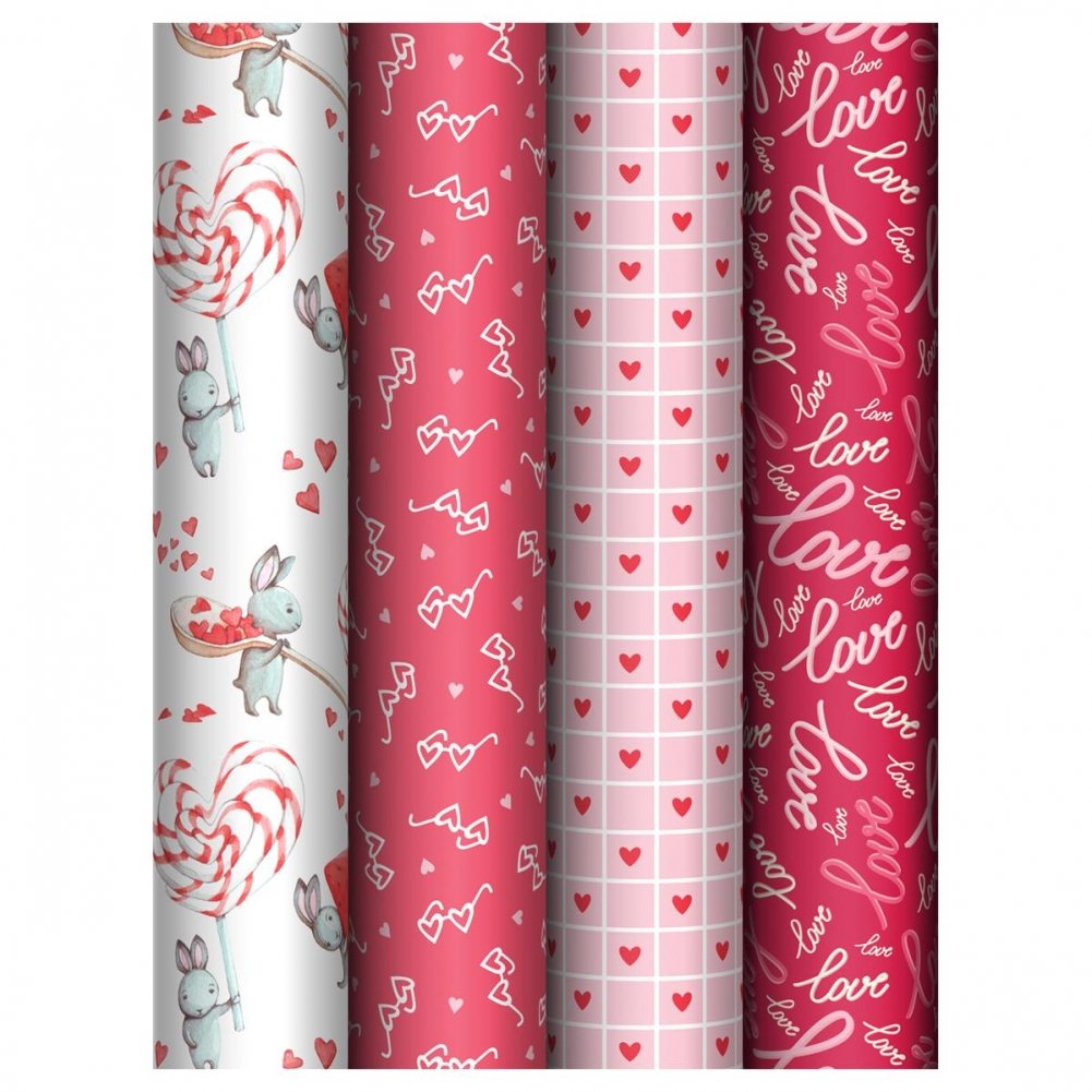 Упаковочная бумага глянц. 70х100 см, MESHU "Love", 80 г/м2, ассорти, 4 дизайна. Арт. MS_62827
