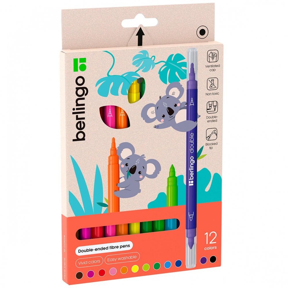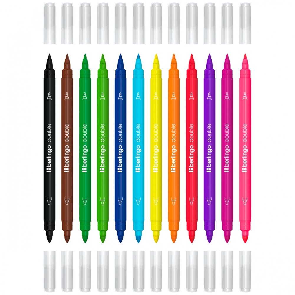 Фломастеры двусторонние Berlingo "Double", 12 цв., 12 шт., смываемые, картон, европодвес. Арт. WP_03712