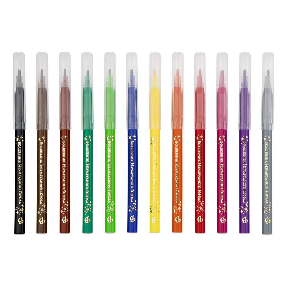 Фломастеры Мульти-Пульти "Волшебник Изумрудного Города", 12 цв., смываемые, картон, европодвес. Арт. WP_64243