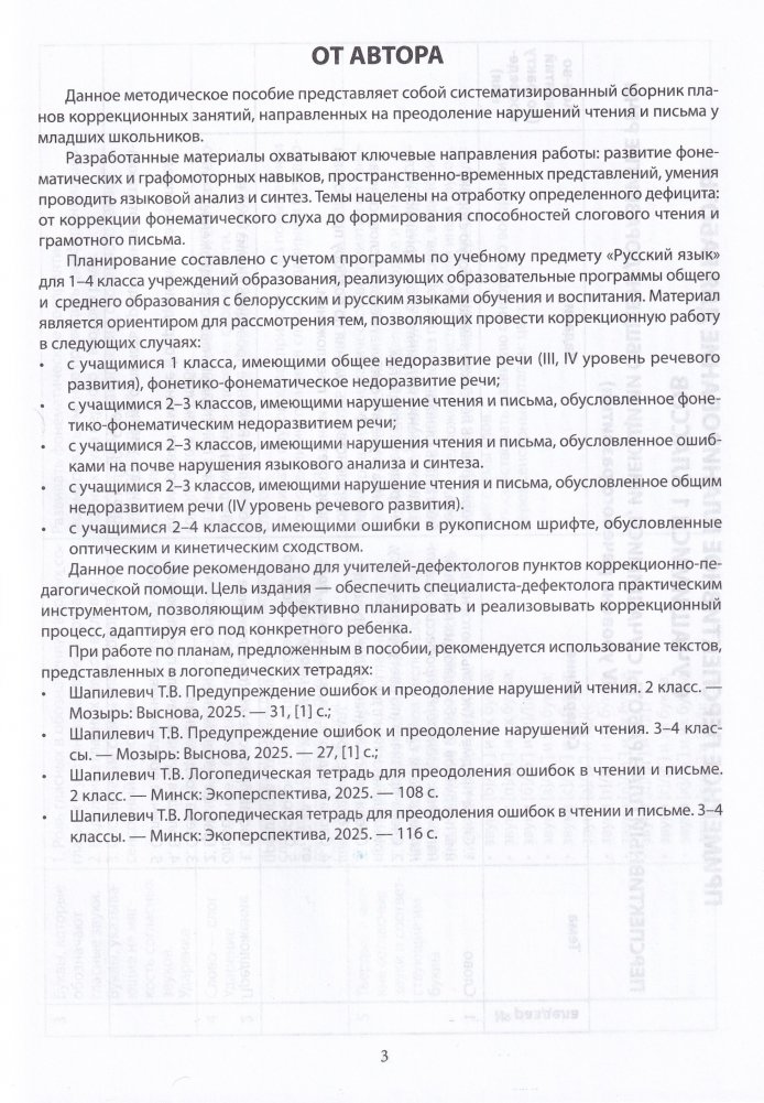 Пособие предназначено для коррекционной работы с учащимися 1-4 классов, которые имеют различные нарушения чтения и письма и посещают пункт коррекционно-педагогической помощи. В пособии представлено примерное планирование с последовательным перечислением тем, необходимых для рассмотрения в ходе такой работы, задач, которые при этом могут быть решены, и рекомендационных указаний на дополнительные сведения и виды деятельности. Изложение планов ведется по принципу постепенного усложнения материала с учетом типа речевого нарушения и возраста ребенка.