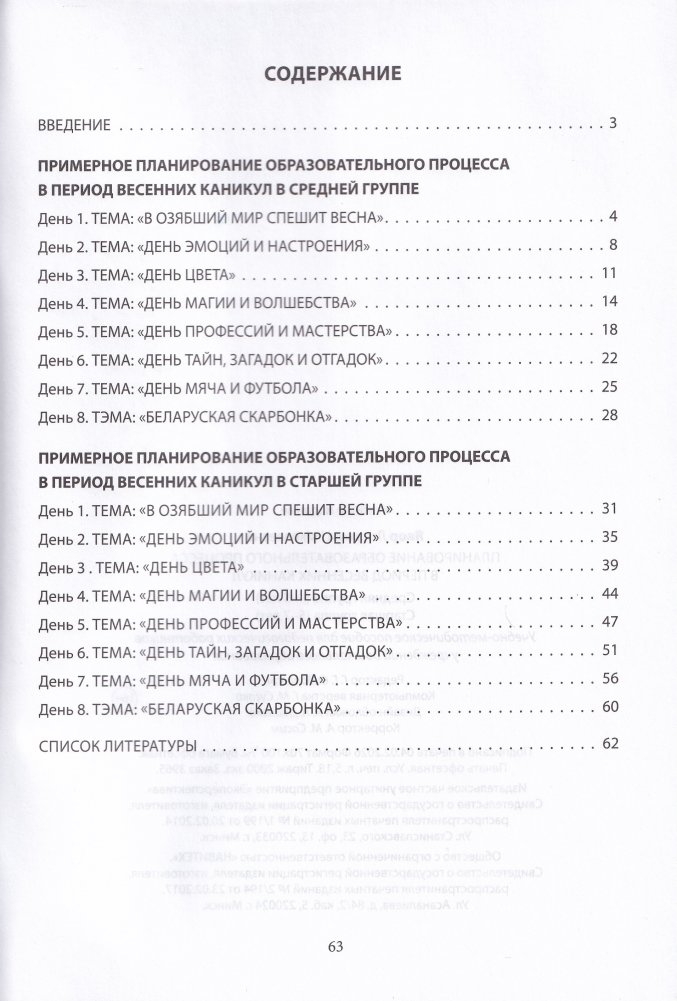 Планирование образовательного процесса в период весенних каникул : средняя группа (4-5 лет), старшая группа (5-7 лет). Учебно-методическое пособие для педагогических работников учреждений дошкольного образования