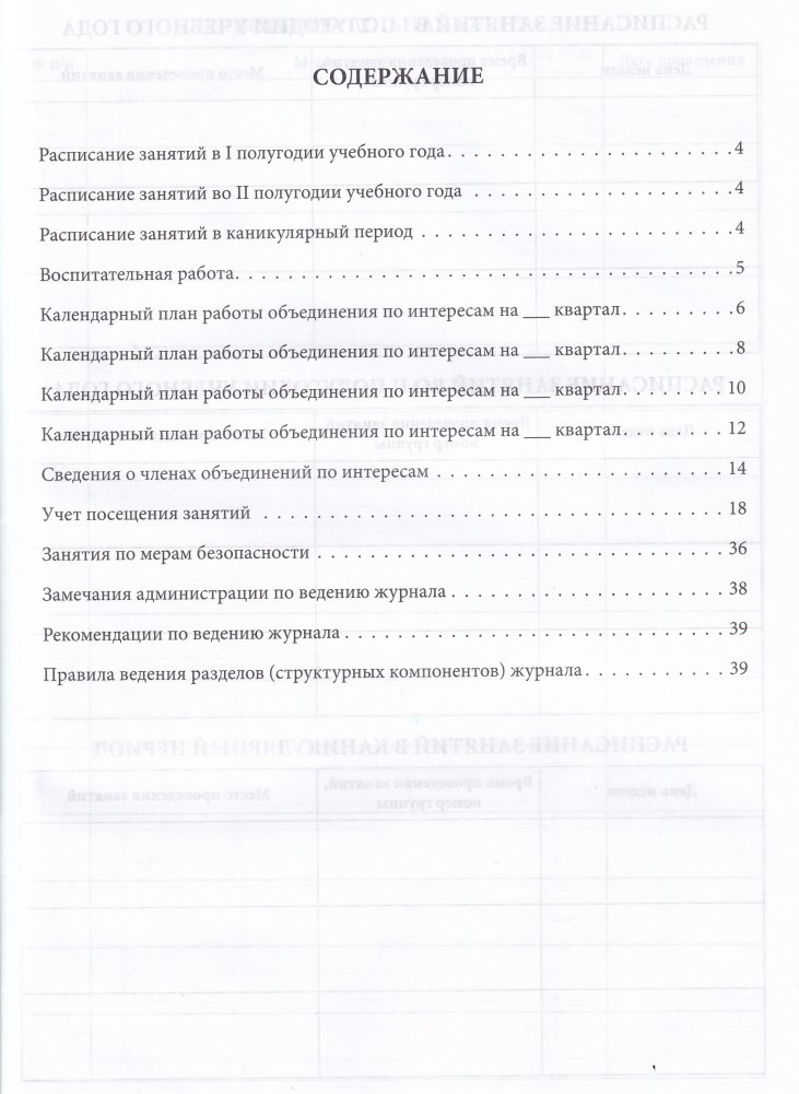 Журнал планирования и учета работы объединения по интересам содержит структурные компоненты, определяющие алгоритм организации работы в течение учебного года.