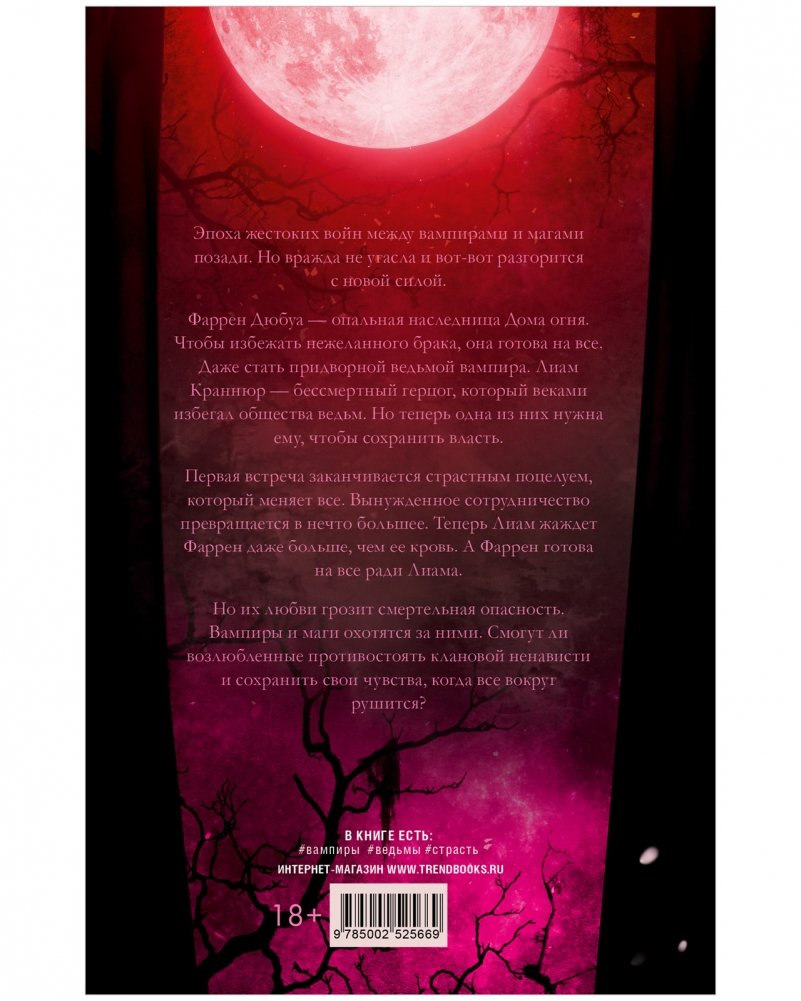 Фаррен Дюбуа — опальная наследница Дома огня. Чтобы избежать нежеланного брака, она готова на все. Даже стать придворной ведьмой вампира. Лиам Краннюр — бессмертный герцог, который веками избегал общества ведьм. Но теперь одна из них нужна ему, чтобы сохранить власть.