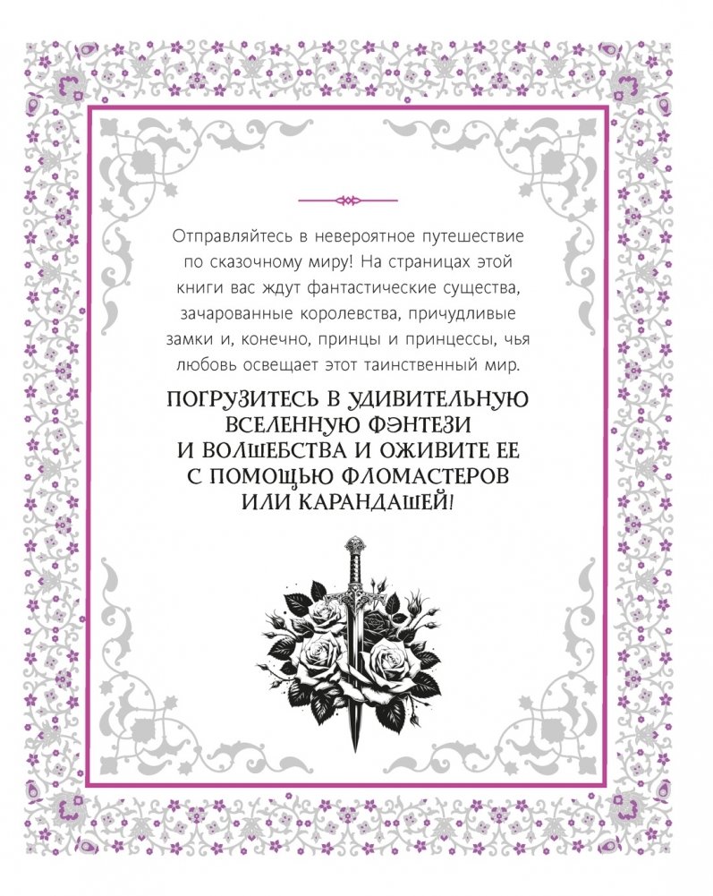 Вместе с этой раскраской отправляйтесь в путешествие по зачарованному королевству, только не забудьте взять с собой любимые карандаши, фломастеры или краски!