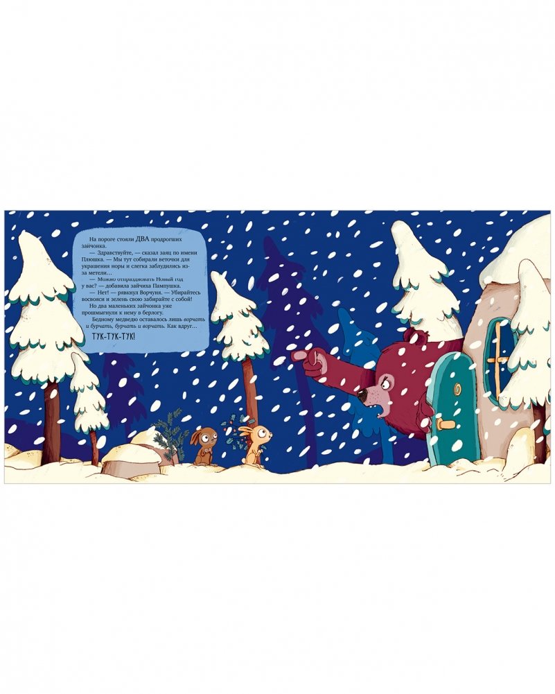 Новый год уже близко, и весь лес готовится к празднику — все, кроме медведя Ворчуни. Он твердо решил: никаких гостей, елки и суеты! В новогодний вечер мишка уютно устроился в своей тихой берлоге, как вдруг… ТУК-ТУК-ТУК!
