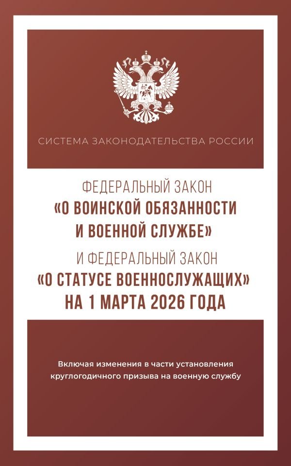 Данное издание включает тексты Федеральных законов "О воинской обязанности и военной службе" и "О статусе военнослужащих" на 1 марта 2026 года. В тексте используются маркированные списки и колонтитулы для удобного восприятия и беглого ознакомления с содержанием книги. Издание учитывает все изменения, опубликованные в официальных источниках на момент подписания издания в печать.