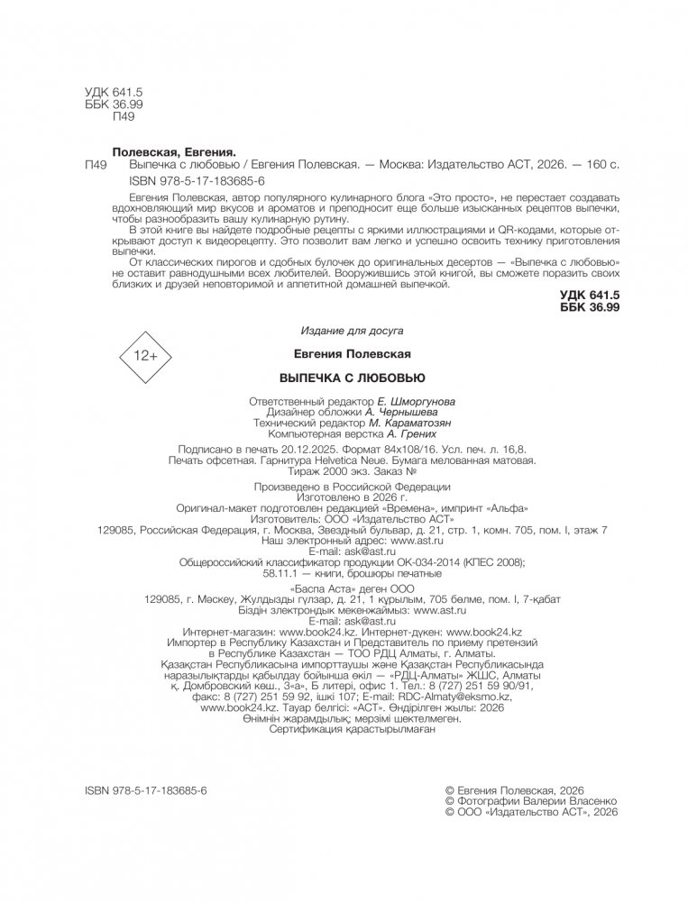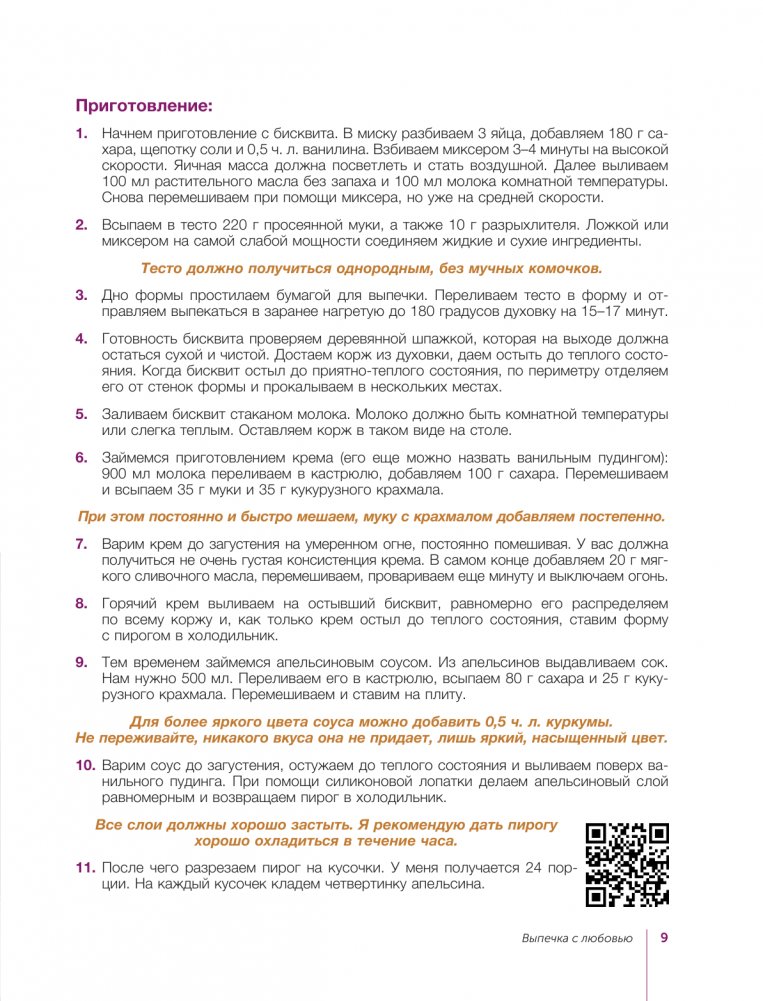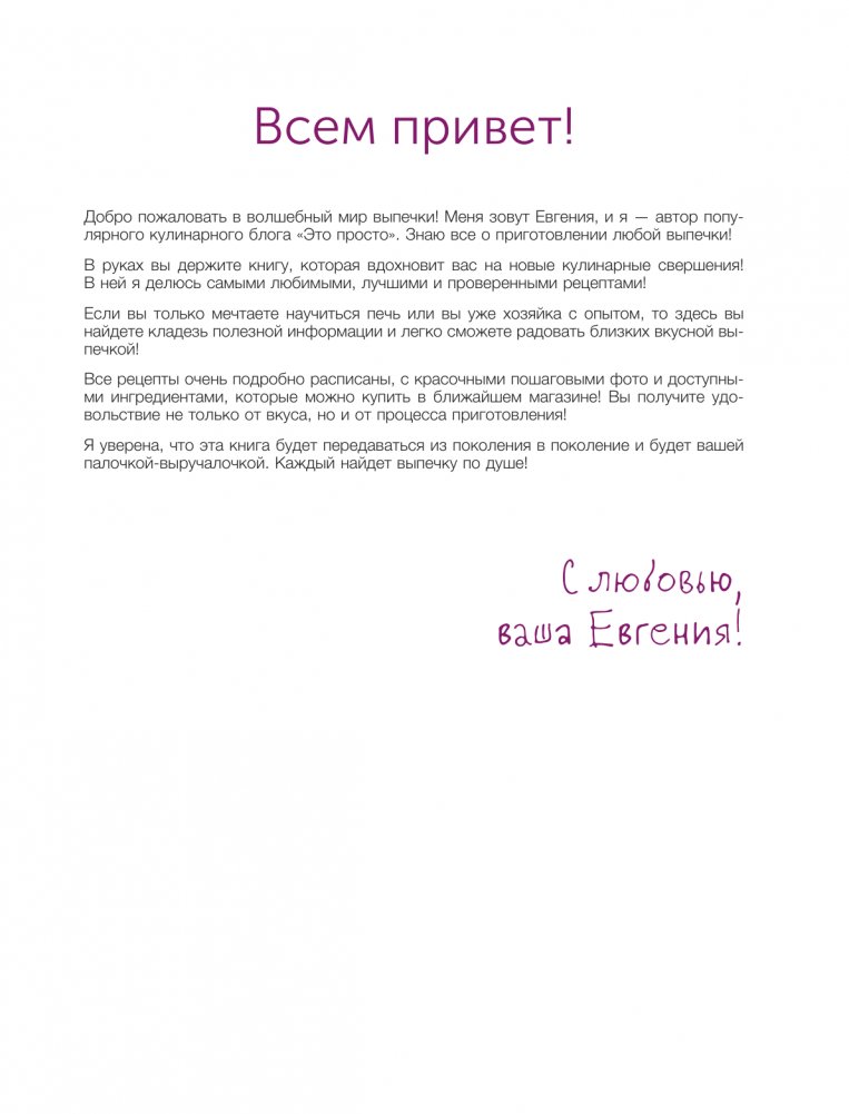 В этой книге вы найдете подробные рецепты c яркими иллюстрациями и QR-кодами, которые открывают доступ к видеорецепту. Это позволит вам легко и успешно освоить технику приготовления выпечки.