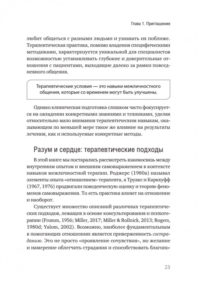 Почему некоторые психотерапевты более эффективны, чем другие? А результаты их клиентов более впечатляющи? Наша книга дает ответ на эти вопросы, рассказывая о навыках общения и установках психотерапевта, которые часто упускаются из виду во время клинической подготовки. Анализируя исследования, посвященные психотерапии, проведенные в течение последних 70 лет, авторы выделили восемь главных качеств терапевта, которые улучшают результаты клиентов, независимо от используемого подхода. Если вы практикующий психотерапевт или собираетесь им стать, все необходимые рекомендации по изучению, отработке и использованию важнейших клинических навыков вы найдете в этом издании.