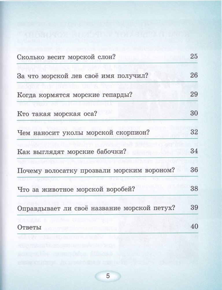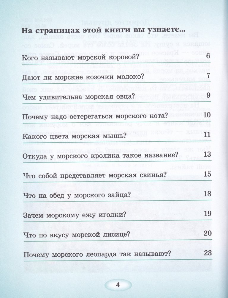 В этой книге Дед Природовед даст ответы на вопросы, которые заинтересуют многих мальчиков и девочек. Читатели узнают, кого называют морской коровой. Дают ли морские козочки молоко? Чем удивительна морская овца? Что за обед у морского зайца? Как выглядят морские бабочки? Оправдывает ли свое название морской петух? И многое другое.