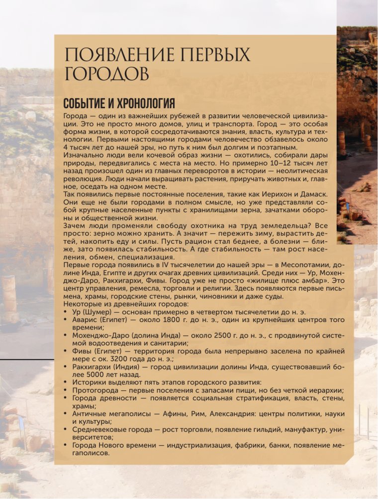 Вы познакомитесь с первыми шагами человечества в науке, искусстве и технологиях: зарождением письменности, открытием колеса, строительством египетских пирамид, возникновением религий и появлением денег. Читайте о великих людях, оставивших след в истории: Исаак Ньютон, Николай Коперник, Чарльз Дарвин, Дмитрий Менделеев, Александр Попов и многие другие.